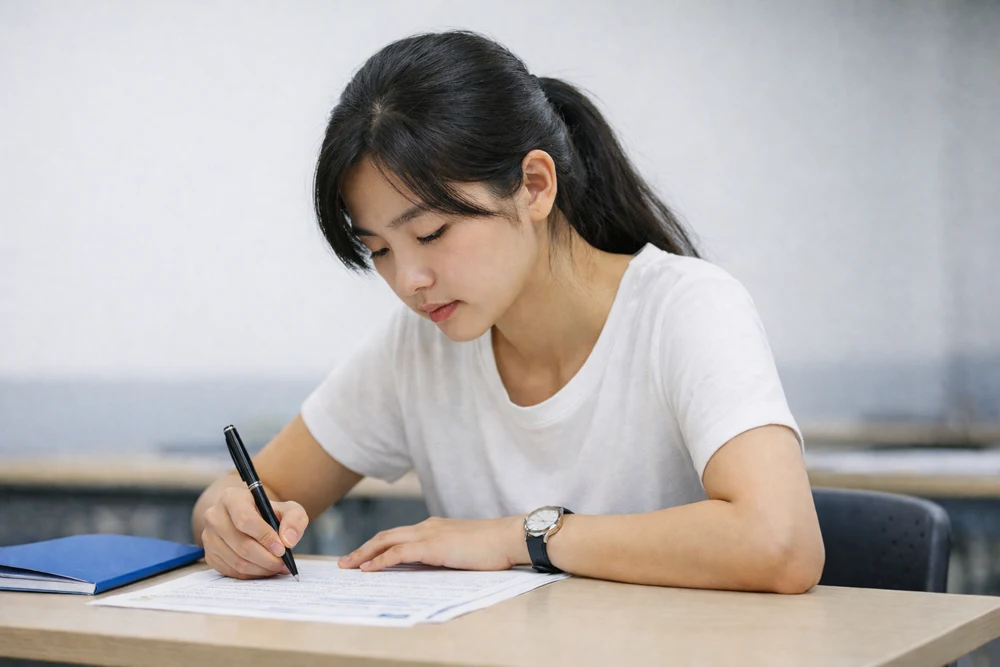 A duração reflete essa mudança. O TOPIK I tem 70 questões de múltipla escolha e dura 100 minutos. O TOPIK II tem 104 questões no total e dura 180 minutos. Sua seção de redação inclui 4 tarefas, com itens de resposta curta e redações. É por isso que o TOPIK II não é simplesmente uma versão mais difícil do TOPIK I. Ele avalia habilidades de produção adicionais, especialmente o controle da escrita sob pressão de tempo.